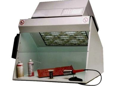 Fume extraction and fume recirculation systems to remove odours and harmful fumes from the work area. For solvents, glues and soldering.