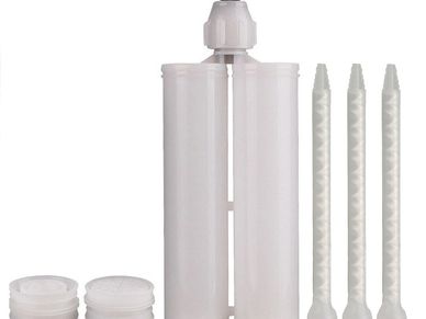 Dual syringes, cartridges and static mixer nozzles for use with two-component materials such as epoxies, polyurethanes, doming resins and more.